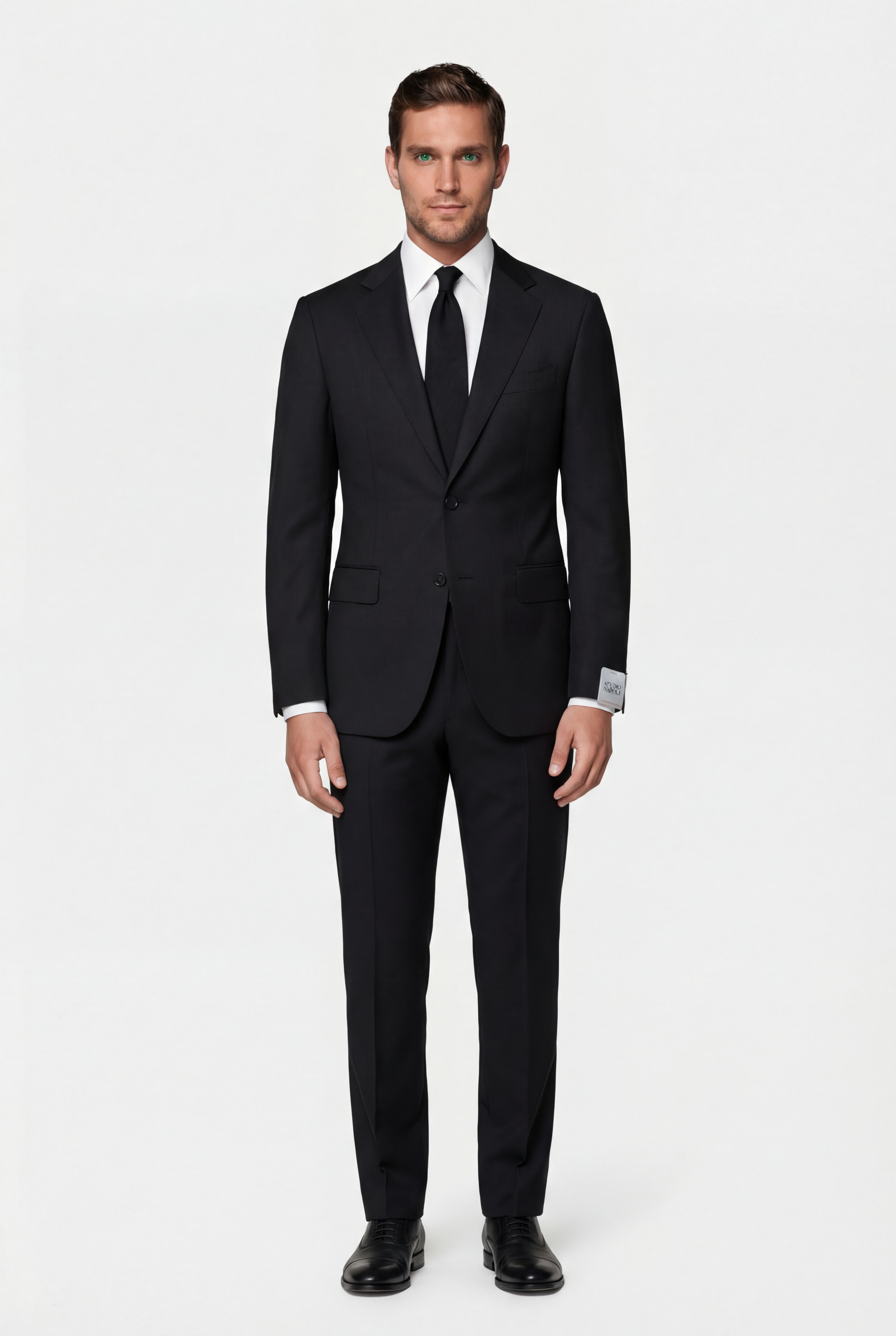 • Классический мужской костюм приталенного силуэта из полушерстяной французской ткани с матовым эффектом. Пиджак однобортный, две шлицы. Застежка на две пуговицы. Воротник классический, отложной, на лацкане имеется фасонная петля. Край лацкана, воротник, клапаны карманов декорированы отделочной строчкой «вспушка» (имитация ручного стежка). Два боковых кармана с клапанами, нагрудный карман «листочка». Рукава со шлицами на 4 пуговицы пришитые внахлест. Четыре внутренних кармана, один застегивается на пуговицу. Брюки прилегающего силуэта, два боковых кармана, два задних кармана с застежкой на пуговицу, на поясе предусмотрены шлевки для ремня. Подкладка: 100 % вискоза. Отличный вариант на каждый день.