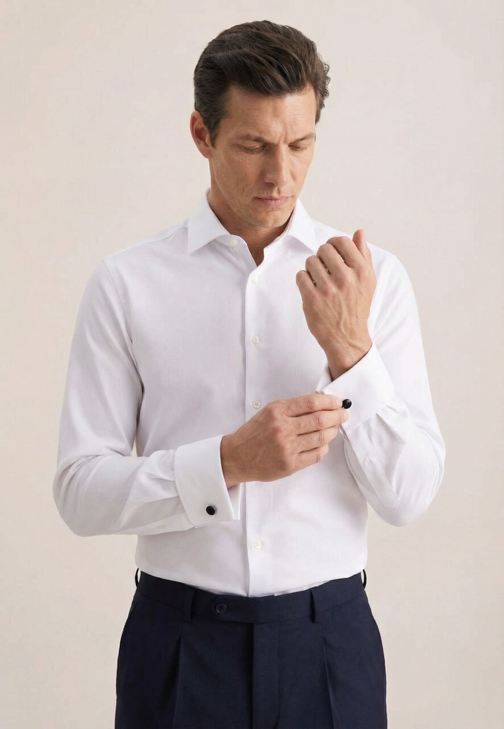 • Custom Fit, Классический воротник, Классический (на пуговице), Однотонный, Белый