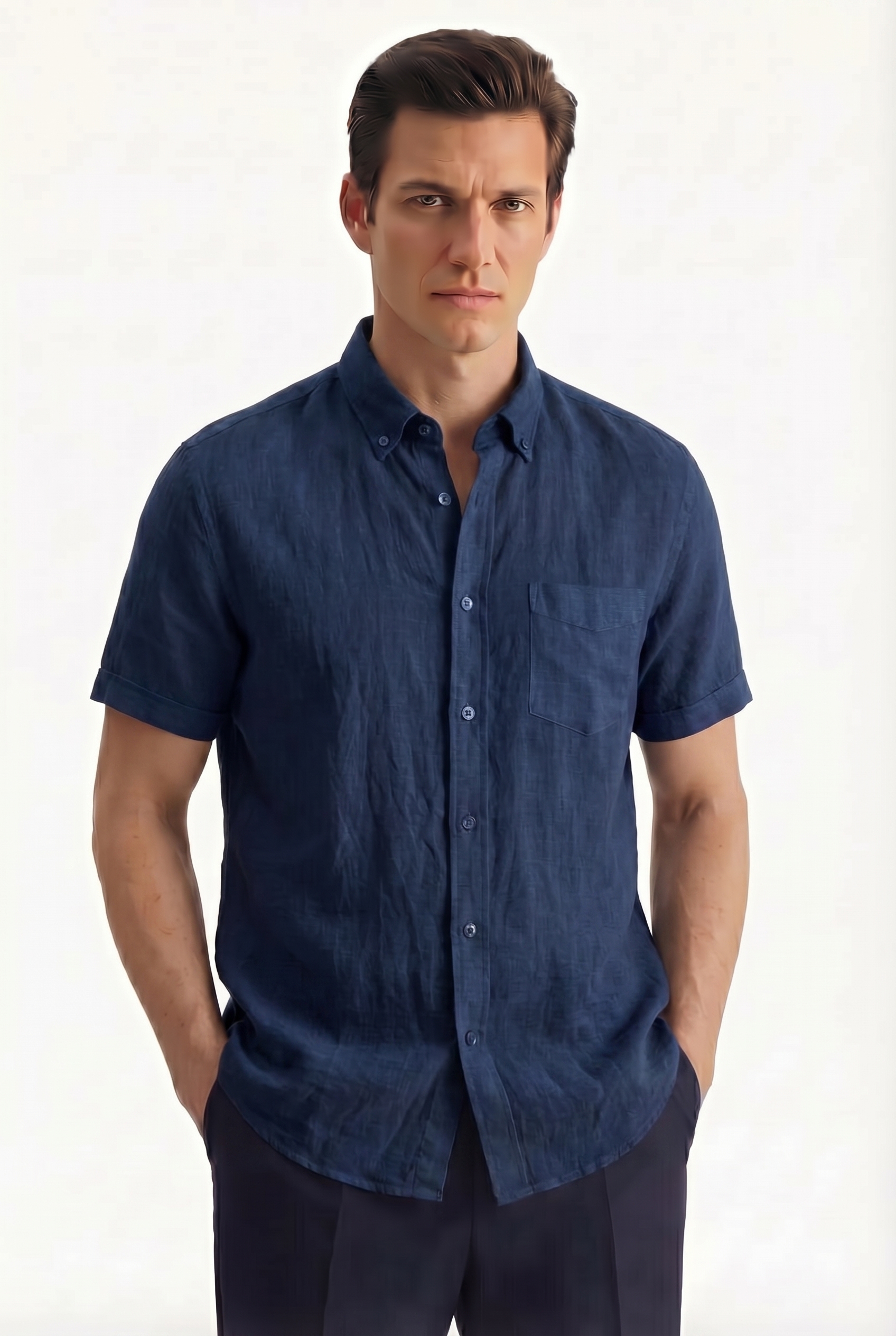 • Приталенный силуэт, Классический воротник, Однотонный, Синий